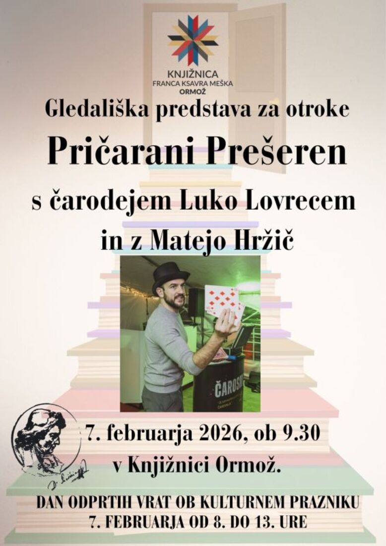 Knjižnica Ormož vas ob slovenskem kulturnem prazniku v soboto, 7. februarja 2026, med 8. in 13. uro vabi na dan odprtih vrat.
