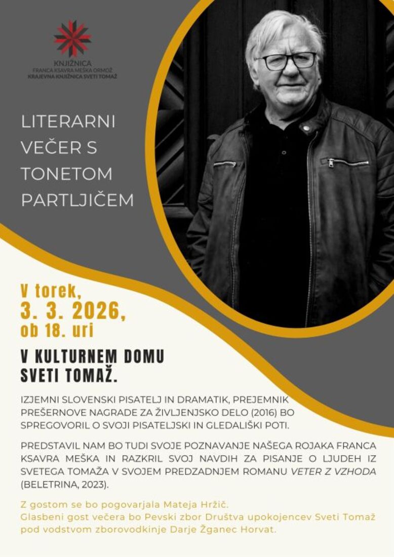 V svojem predzadnjem romanu Veter z vzhoda (Beletrina, 2023) je spregovoril tudi o ljudeh iz Svetega Tomaža. Z zanimanjem bomo prisluhnili od kod mu navdih zanje.