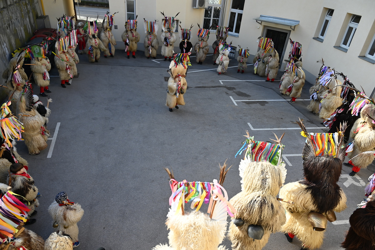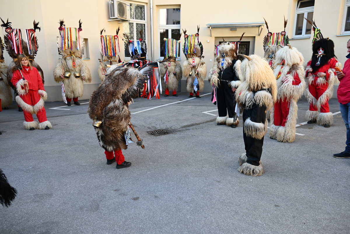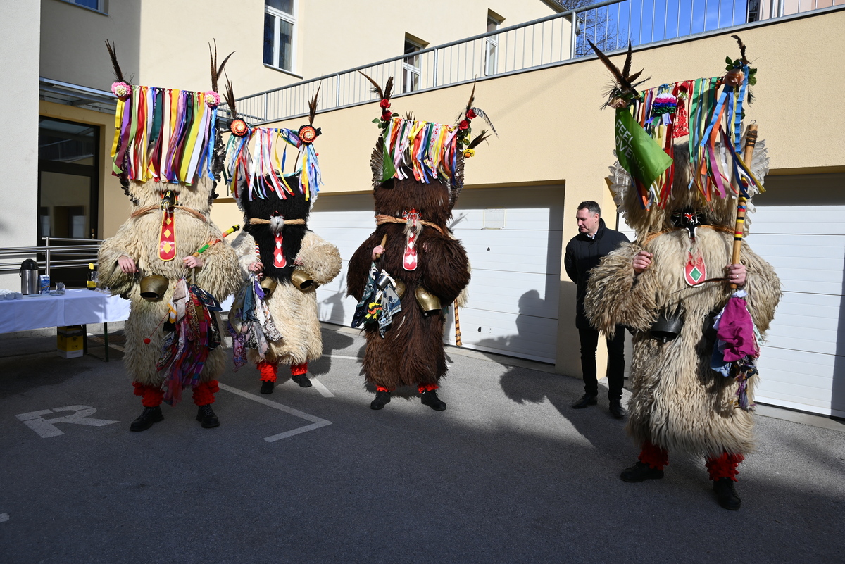 Pred stavbo občine je danes vladalo pristno pustno vzdušje. V dveh obiskih so dvorišče občine napolnili kurenti, ki so s svojo energijo, plesom in glasnim zvonjenjem poskrbeli za nepozabno doživetje ter simbolično odganjali zimo.