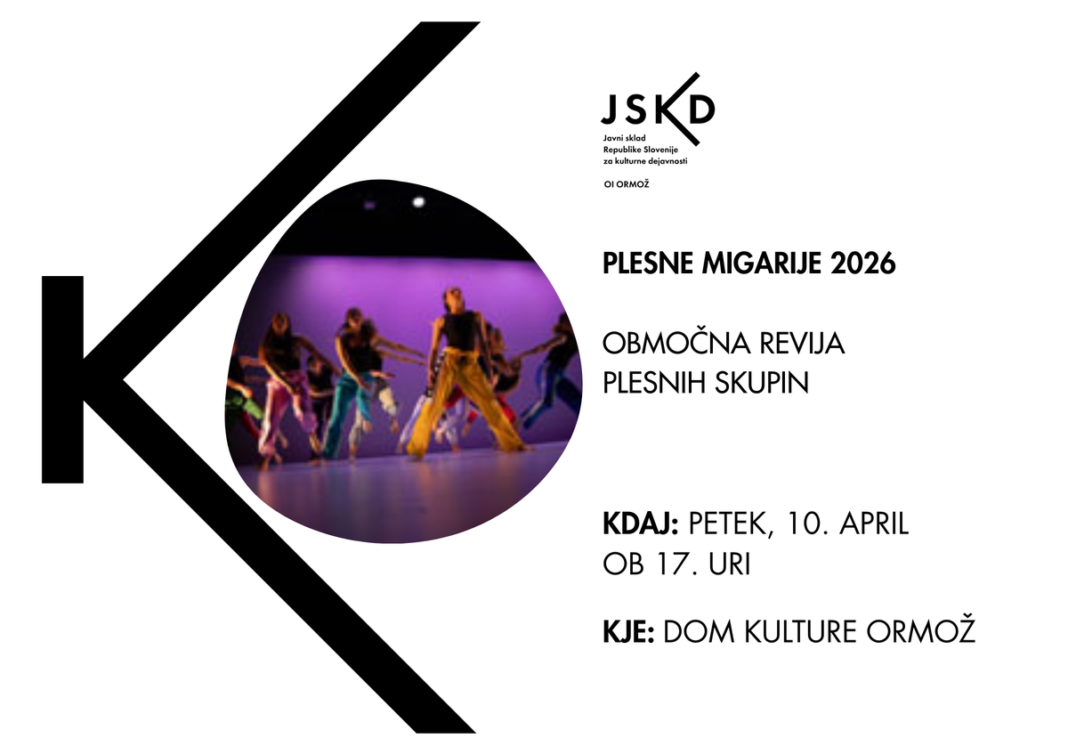 Vljudno vabljeni na območno revijo plesnih skupin - Plesne migarije 2026, ki bo v petek, 10. aprila 2026, ob 17. uri v Domu kulture Ormož.