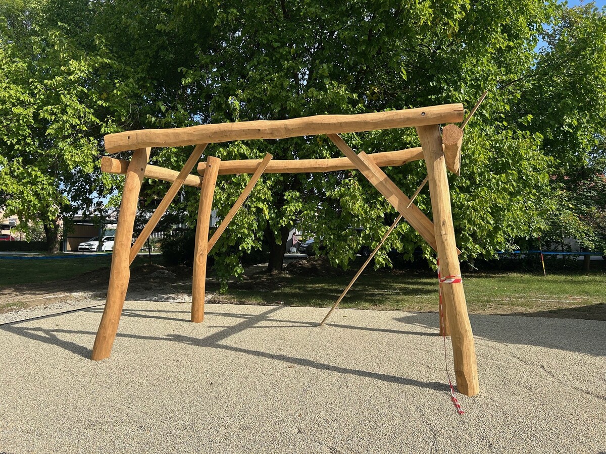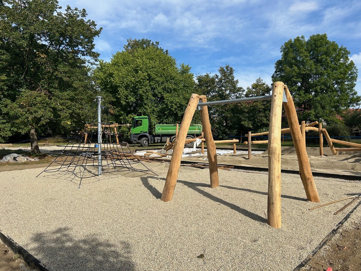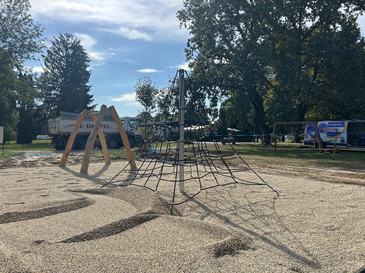 Dela na prenovi otroškega igrišča v grajskem parku lepo napredujejo