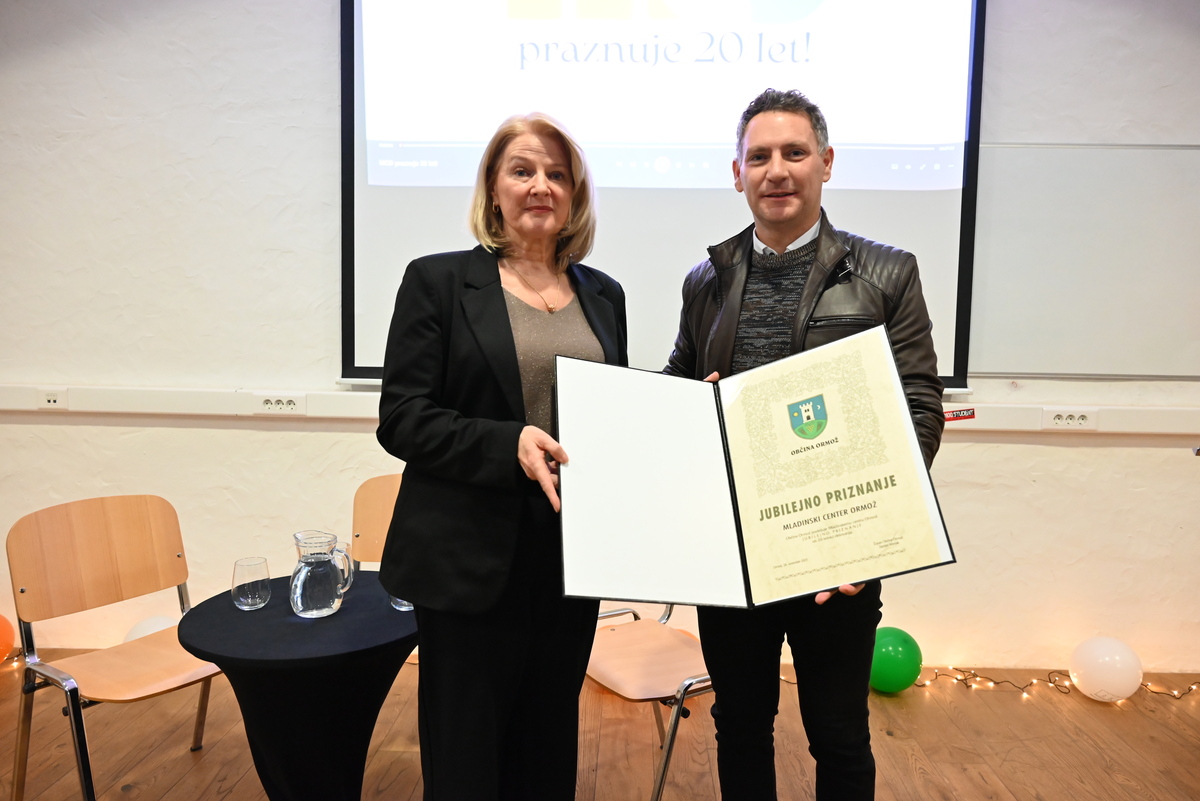 Župan je ob jubileju Mladinskemu centru Ormož podelil jubilejno priznanje Občine Ormož ter ob tej priložnosti izrekel želje za nadaljnje uspešno delo: »Naj skupaj z mladimi napišemo še mnogo desetletij odločnih in navdihujočih zgodb.«
