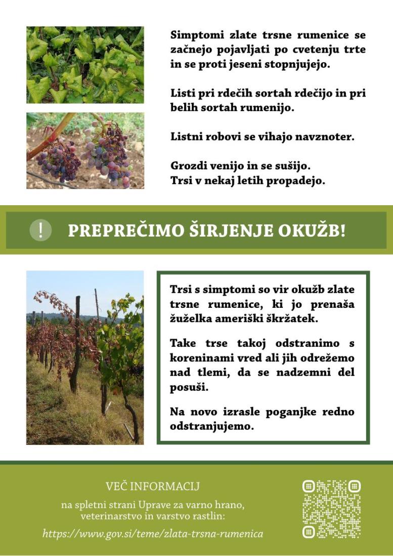 Na spletu je objavljen posodobljen Načrt ukrepov za zlato trsno rumenico v Republiki Sloveniji: https://www.gov.si/zlata-trsna-rumenica/